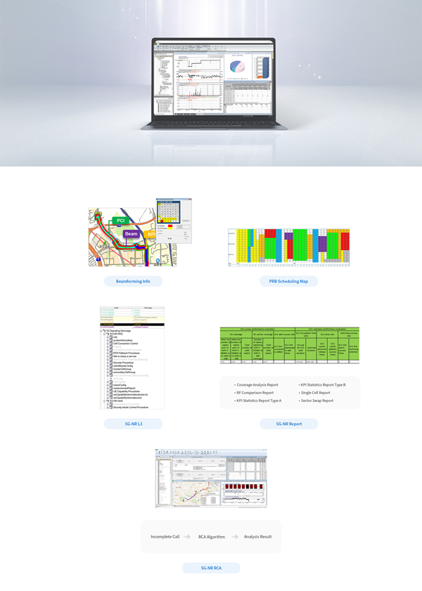 - 3GPP/ETSI KPI AND STATISTICS: Provides FTP, HTTP, Email, Voice(VoLTE/UMTS) Statistics and LTE/NB-IoT/UMTS/GSM KPI.
